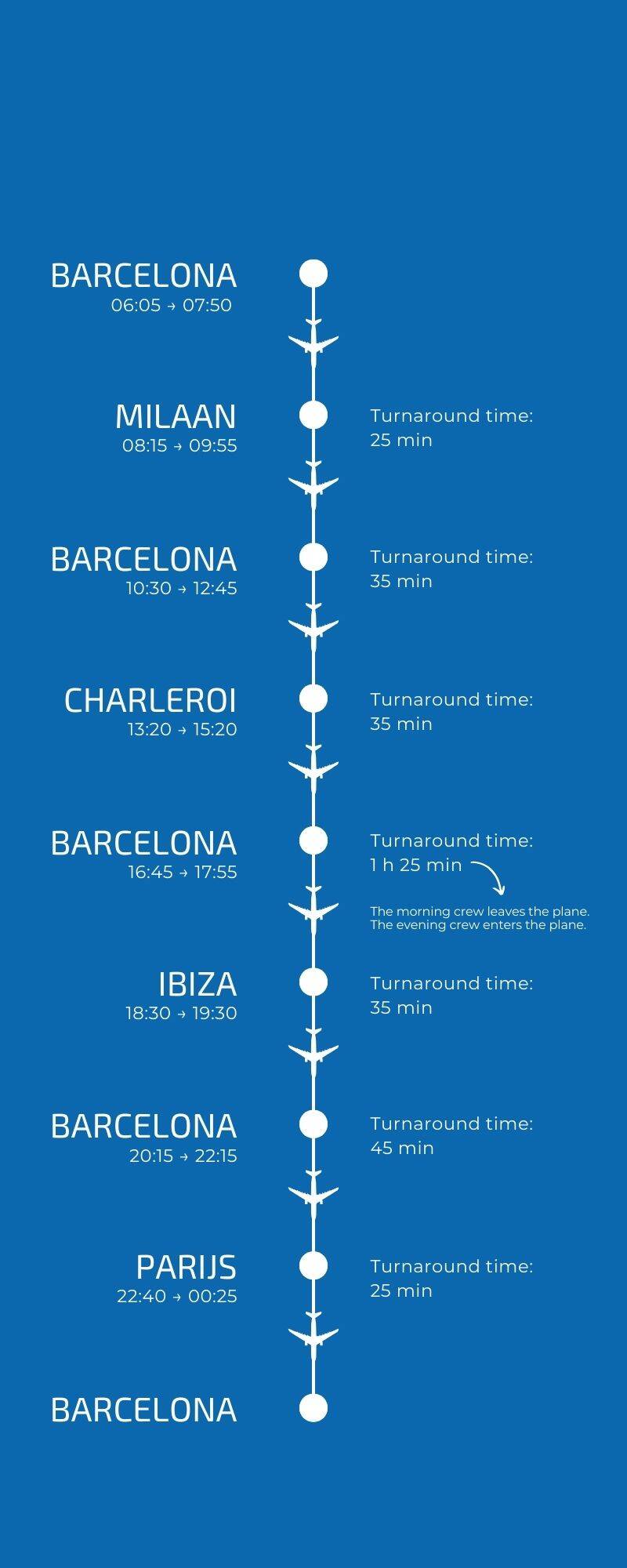 Turnaround time = tijd op de grond in de desbetreffende luchthaven.